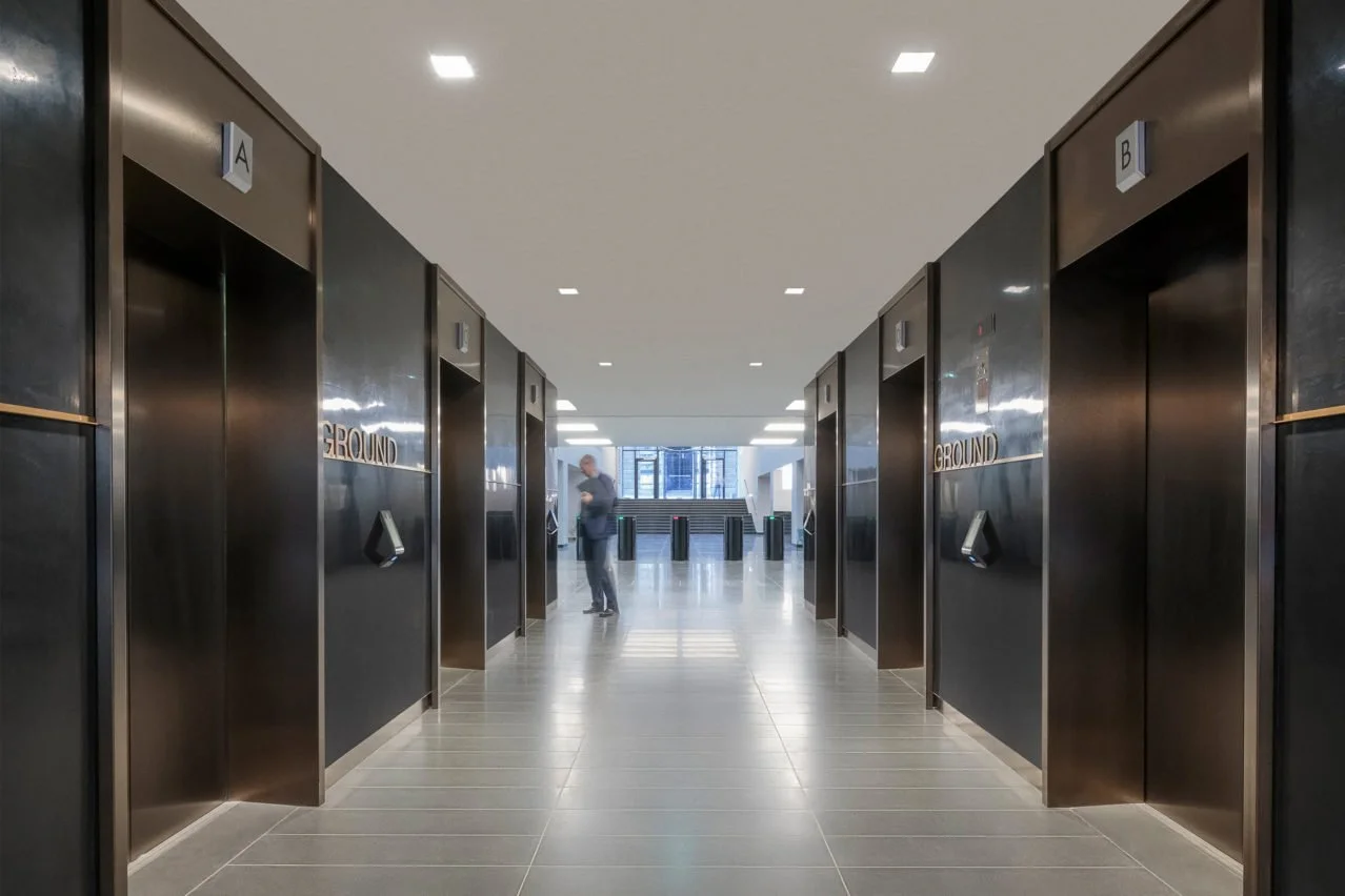 The building was skillfully transformed from a rather tired 1980’s structure, into a Grade A office building, fit to serve as the headquarters for a number of highly prestigious companies.